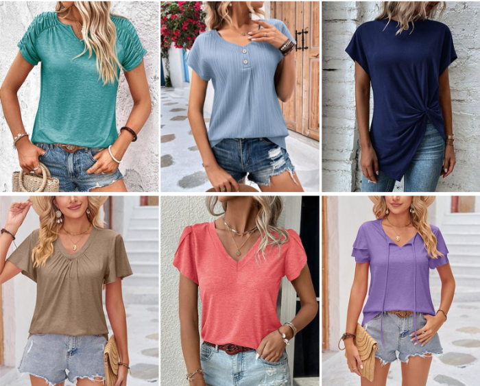 These tops are a steal! Each style comes in a variety of colors. Sizes range from S (4-6) to 2X (18-20).