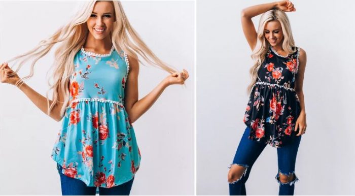 This babydoll tank is darling with the lace trim and high waistline!
