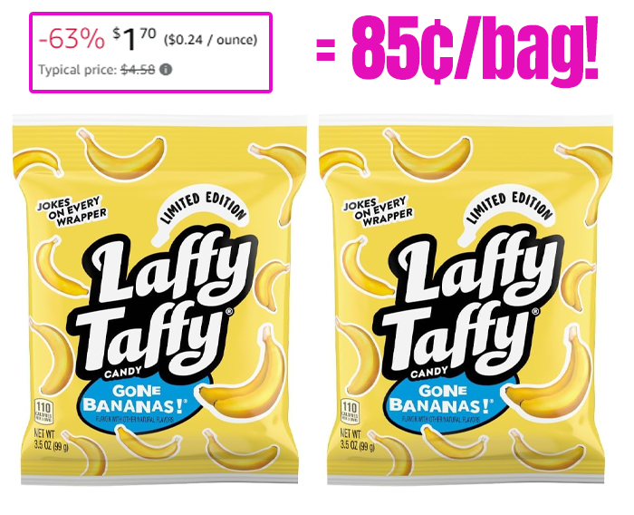 Laffy Taffy Mini Bar Bag, Banana, 3.5 oz, (Pack of 2) for $1.70 (Reg $4.58)!