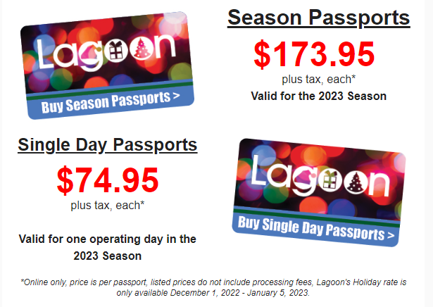 Plan on a season of fun at Lagoon! This is the lowest price you’ll find on Lagoon season passports and day passes, and prices are only good through January 5th.