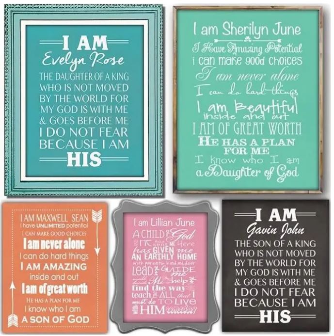 - “I AM” signs of Faith in your choice of 13 colors and 5 designs!
