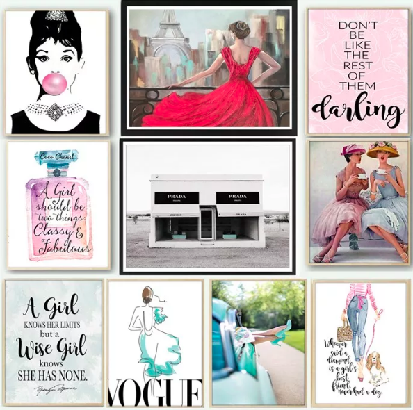 I have always wanted to decorate my daughter’s rooms in a Breakfast at Tiffany’s theme with the bubble gum print! Glam up your space and style it pretty with these easy to frame fashion art prints. Fun yet sophisticated, there is an outfit for every room.