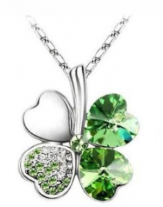 - Three high quality Heart shape crystal with 1 Platinum plating leaf form a forever four leaf pendant