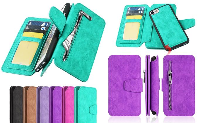 Leather Card Folio 3-folds Wallet Pouch with Detachable iPhone 6, 7, 8, 6/7/8 Plus, XR, XS Max Phone Case for $13.99 or $14.99 (reg $49.99)! *This price is good today 1/1 only.