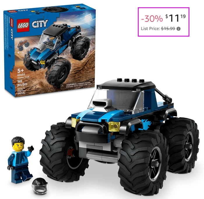 LEGO City Blue Monster Truck Off-Road Toy for $11.19 (reg $15.99)