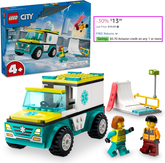 LEGO City Emergency Ambulance and Snowboarder Toy Vehicle Playset 60403 for $13.99 + $0.70 Amazon Credit (Reg $19.99)!