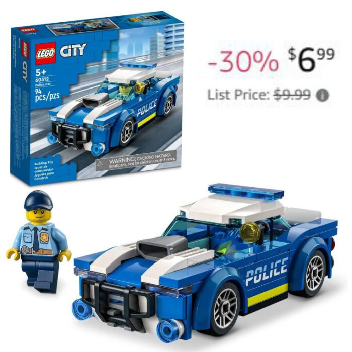- This toy police car for kids includes a LEGO police officer minifigure with a toy flashlight and police cap element