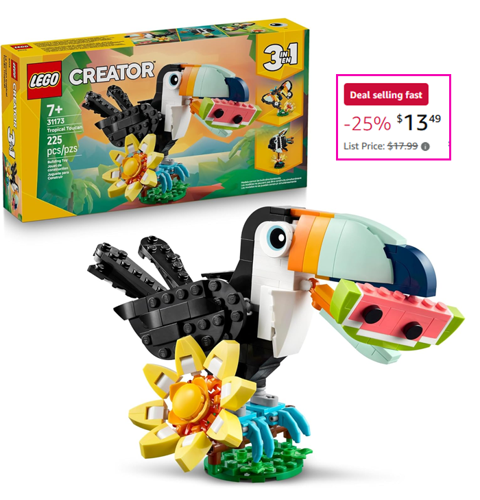 LEGO Creator 3 in 1 Wild Animals: Tropical Toucan Building Toy 31173 for $13.49 (Reg $17.99)!