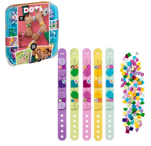 - Immerse your child in the fun of making custom friendship bracelets with this LEGO DOTS Bracelet Mega Pack (41913) toy, featuring 5 adjustable bands and 295 colorful tiles. Play starts right out of the box!