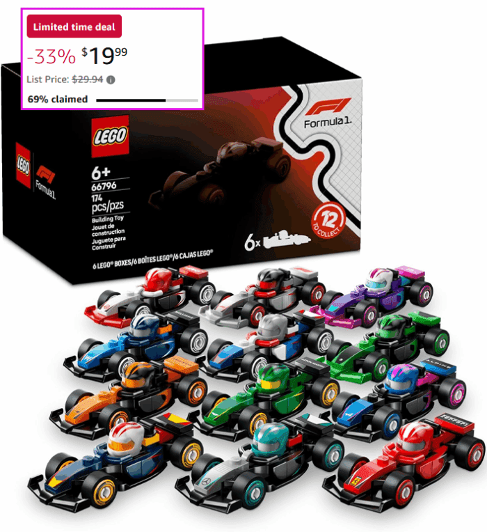 LEGO F1 Collectible Race Cars 6 Pack Mystery Box 66796 for $16.69 (Reg $29.94)!