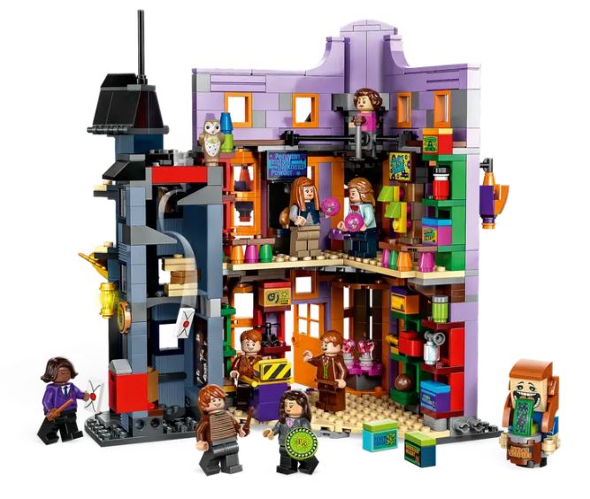 - LEGO Harry Potter playset featuring 2 Diagon Alley buildings (76422) – Create detailed, connectible LEGO brick models of the Weasleys’ Wizard Wheezes joke shop and the Magical Owl Post from Diagon Alley