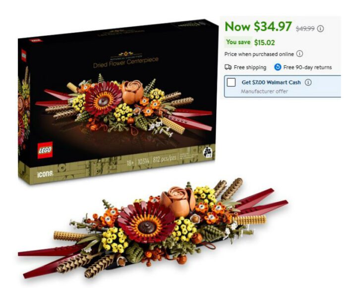 LEGO Icons Dried Flower Centerpiece, Botanical Collection Crafts Set, 10314 for $34.97 (Reg $49.99) + $7.00 Walmart Cash!