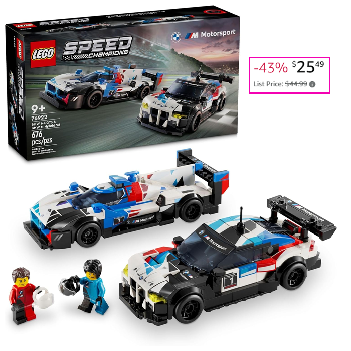 LEGO Speed Champions BMW M4 GT3 & BMW M Hybrid V8 Race Cars for $25.49 (Reg $44.99)!