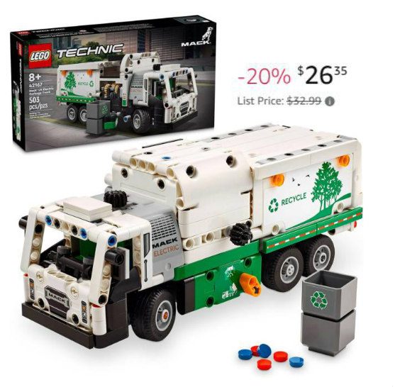 LEGO Technic Mack LR Electric Garbage Truck Toy $26.35 (reg $32.99)