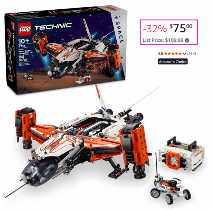 LEGO Technic VTOL Heavy Cargo Spaceship LT81 42181 for $75 (Reg $109.99)!
