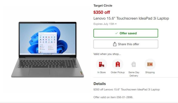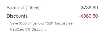 Lenovo 15.6″ Touchscreen IdeaPad 3i Laptop $389.99 + 5% off with your RedCard