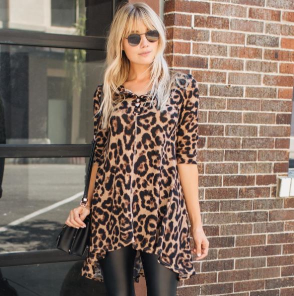 Leopard Print Play It Loose Casual Henley $24.99 (reg $59.00)
