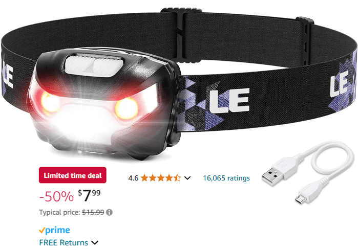 Lepro LED Rechargeable Headlamp for $7.99 (reg $15.99)