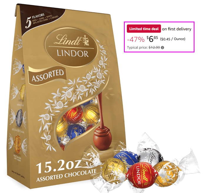 Lindt LINDOR Assorted Chocolate Candy Truffles, 15.2 oz Bag for $8.06 (Reg $12.99)