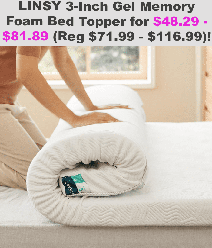 LINSY 3 Inch Gel Memory Foam Bed Topper for $71.99 – $116.99