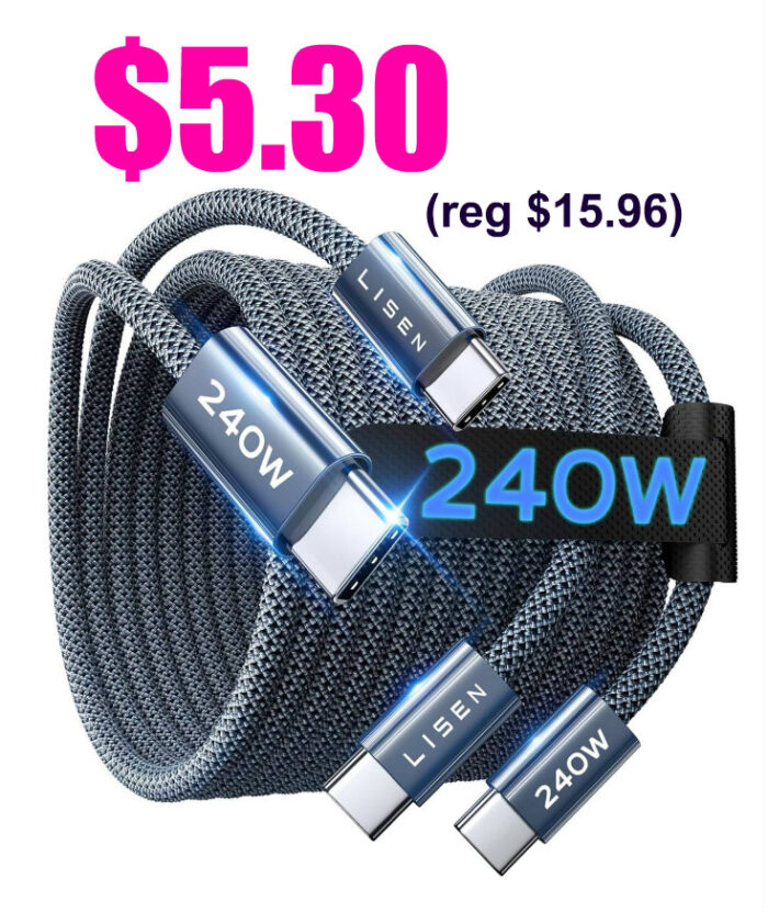 LISEN 240W USB C to USB C Cable 2 Pack for $9.99 (reg $15.96)
