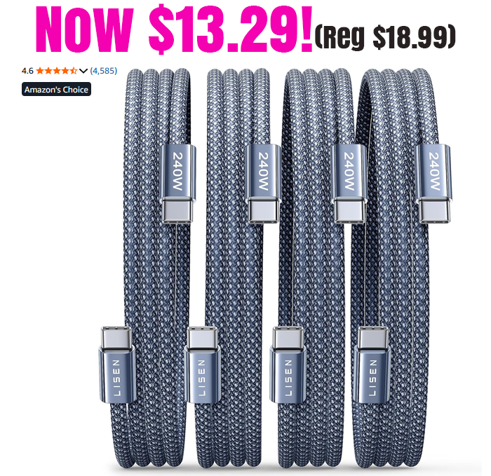 LISEN 240W USB C to USB C Charging Cables, 4-Pack (6.6Ft) for $18.99