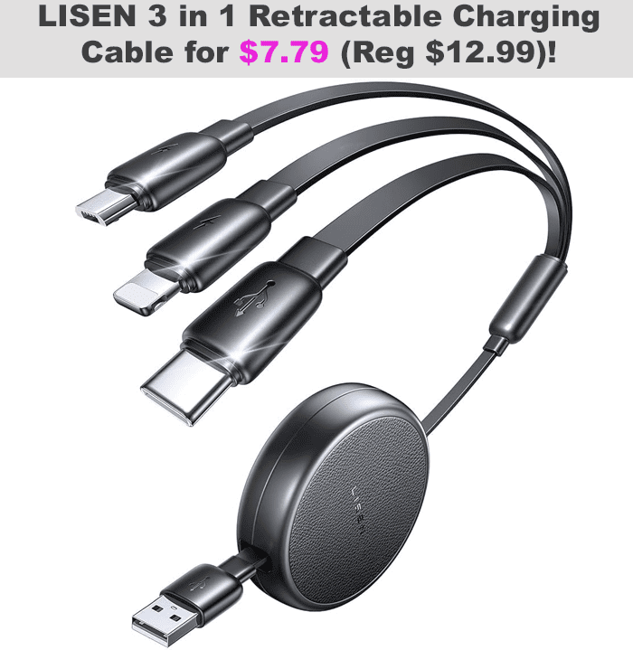 LISEN 3 in 1 Retractable Charging Cable for $9.49 (Reg $12.99)!