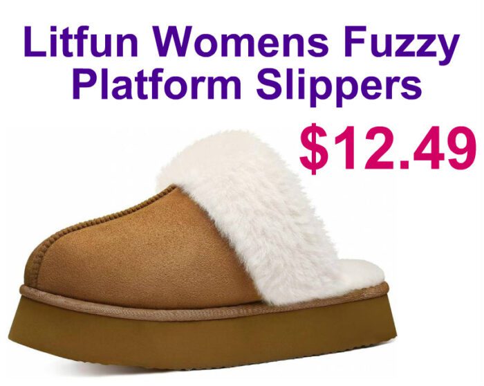 Litfun Womens Fuzzy Platform Slippers $24.99