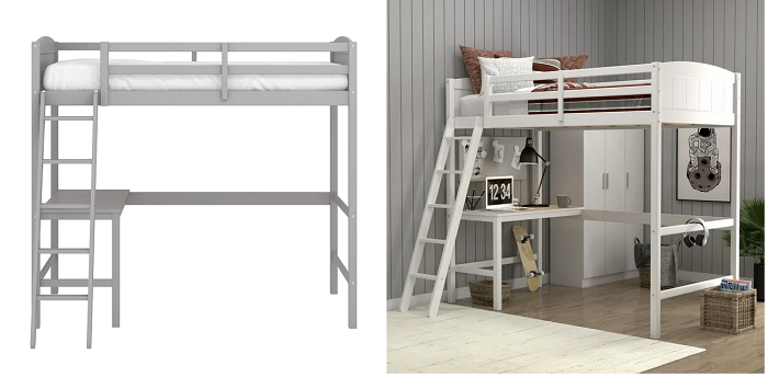 Loft beds are a smart way to add space to a bedroom. This one has a built-in desk, too! Choose from gray or white.