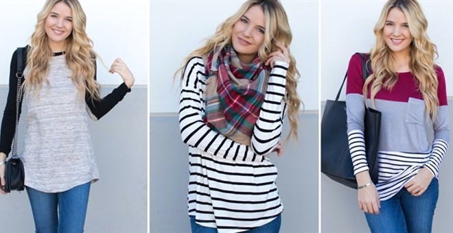 These tops will be super cute with jeans! Each top has different sizing, so make sure you check them closely.