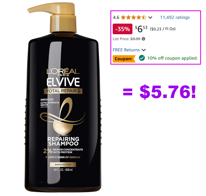 L’Oreal Paris Elvive Total Repair 5 Repairing Shampoo for $7.68 (Reg $9.99)