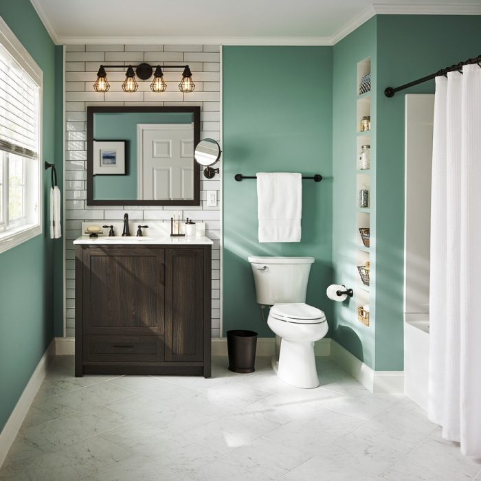 I updated a bathroom in my old house with a Vanity like this from Lowe’s. It really helped the resell of our home and it was such a steal and SO EASY to do!