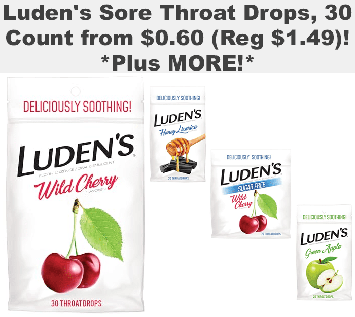 Luden’s Sore Throat Drops, 30 Count for $1.66 (Reg $1.79)!