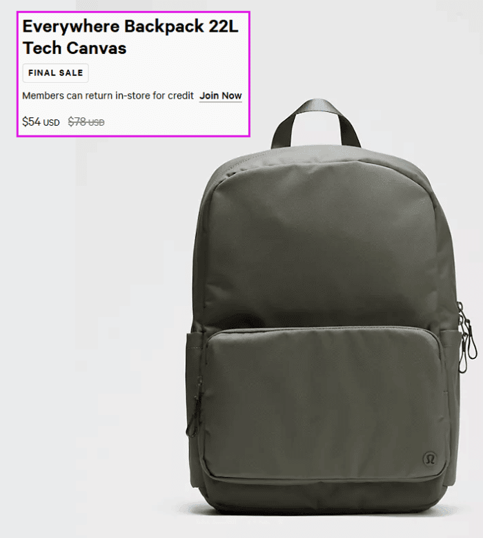lululemon Everywhere Backpack 22L for $59 (Reg $78 – $88)!