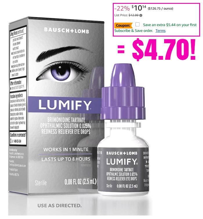 LUMIFY Redness Reliever Eye Drops, 0.25 Fl Oz (7.5 mL) for $11.93 (reg $12.99)
