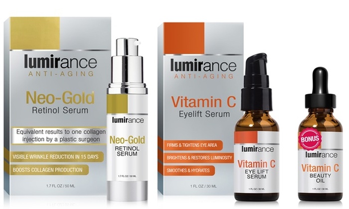 Lumirance Neo-Gold Retinol Serum and Vitamin C Eye Lift with Bonus Beauty Oil for $21.99 (Reg. $181)