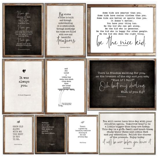I love the idea of decorating my home with inspirational, thoughtful, and loving quotes, and these all hit the nail on the head. I can’t choose!