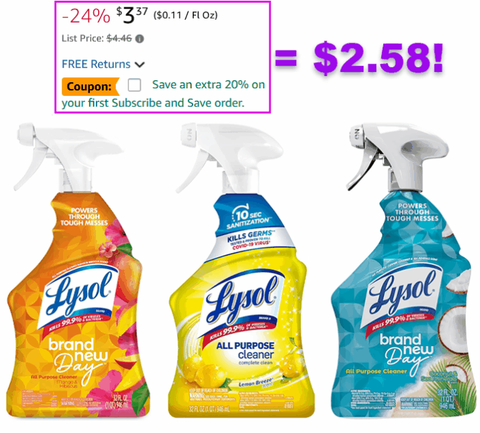 Lysol All Purpose Cleaner Spray, 32 Fl Oz for $2.58 (Reg $4.46)!