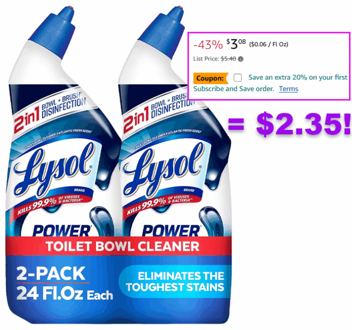 Lysol Toilet Bowl Cleaner, Max Strength, 24 oz (2 ct) for $3.62 (Reg $5.40)!