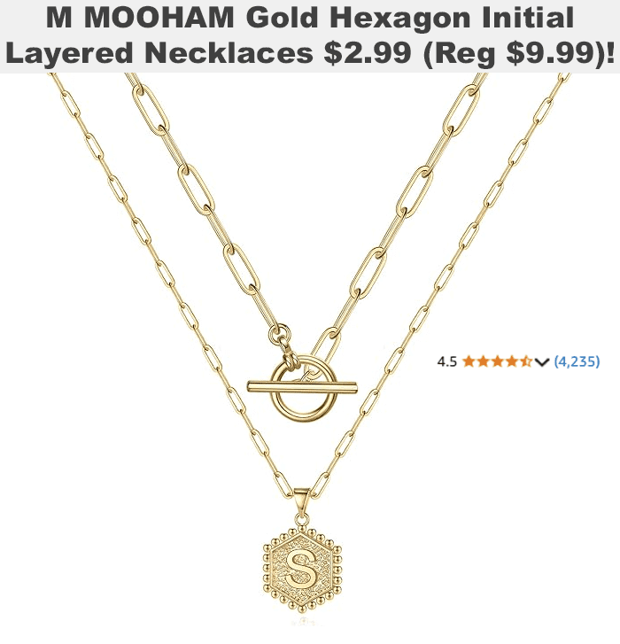 M MOOHAM Gold Hexagon Initial Layered Necklaces for $9.99
