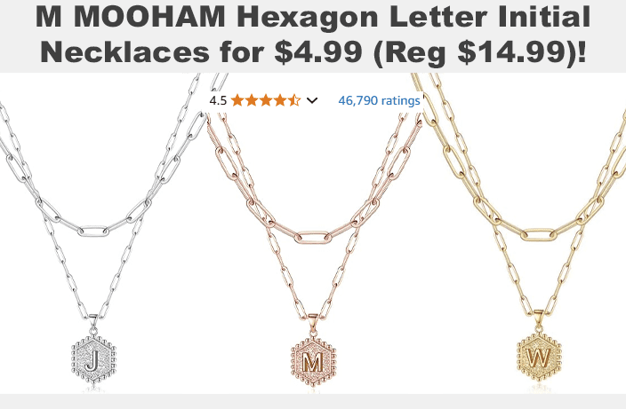 M MOOHAM Hexagon Letter Initial Necklaces for $9.99 – $13.59 (Reg $14.99 – $16.99)
