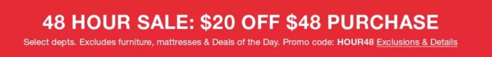 PLUS! For the next 48 hours, you can save $20 off your $48 Purchase!