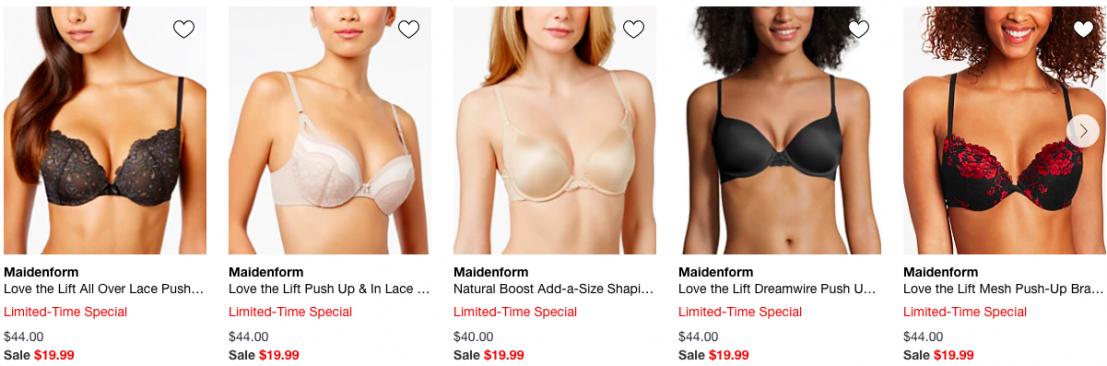 You’ll love Maidenform’s push-up bra designed exclusively with Wonderbra for natural-looking cleavage. Lots of styles and colors to choose from.