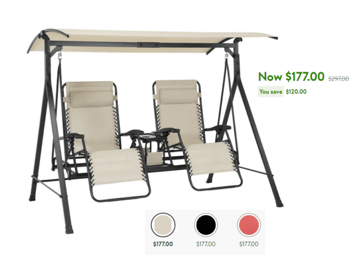 Mainstays 2-Seat Reclining Oversized Zero-Gravity Swing with Canopy and Center Storage Console for $177 Shipped (Reg $297)!