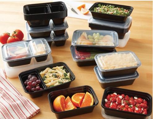 - include fifteen non-divided 4.2 cup, fifteen 2-compartment meal prep 3.8 cup, and five snack size 3 cup containers and lids