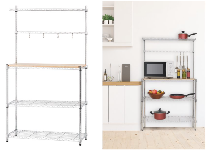 Mainstays Chrome Plated Silver Metal Baker’s Rack with Wood Shelf for $60 (Reg $109.97)!
