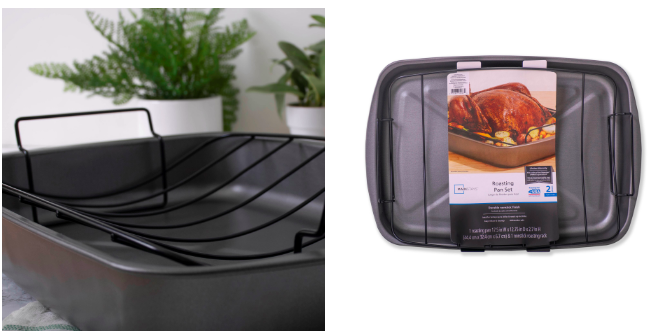 The durable nonstick finish on pan and roasting rackNonstick coated roasting rack elevates food, allowing heat to circulate for even roasting.