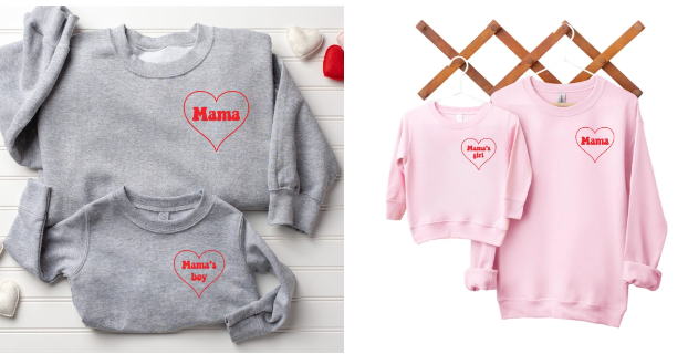 Your little one will love twinning with you in these cute sweatshirts on Valentine’s Day or any day!