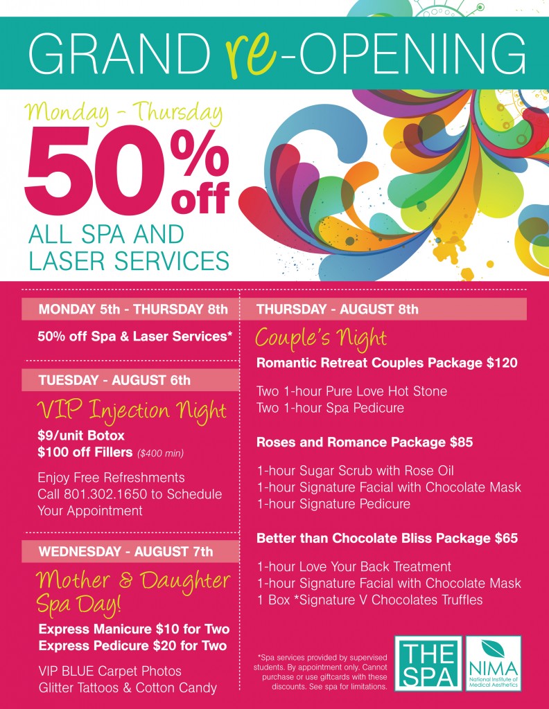 Just a reminder! Make sure and call NIMA to make your appointments for the Mother and Daughter Spa Day.
