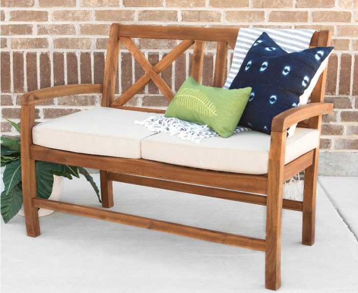 - This outdoor loveseat is made out of solid acacia wood
